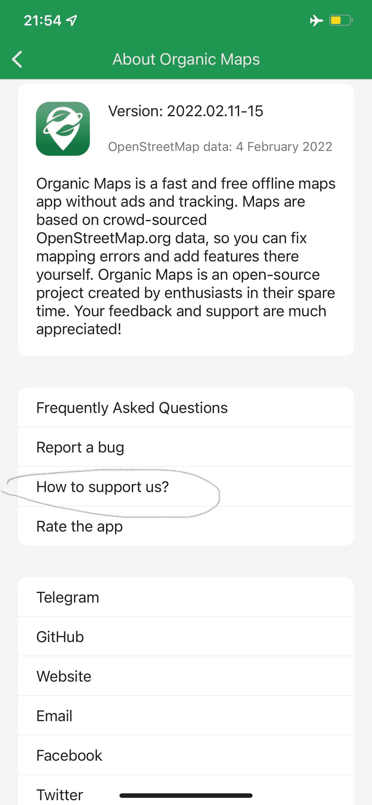 Please don't forget, as there are 0 (zero, none) analytics and statistics libraries in Organic Maps, we rely entirely on your detailed feedback about issues you encounter.